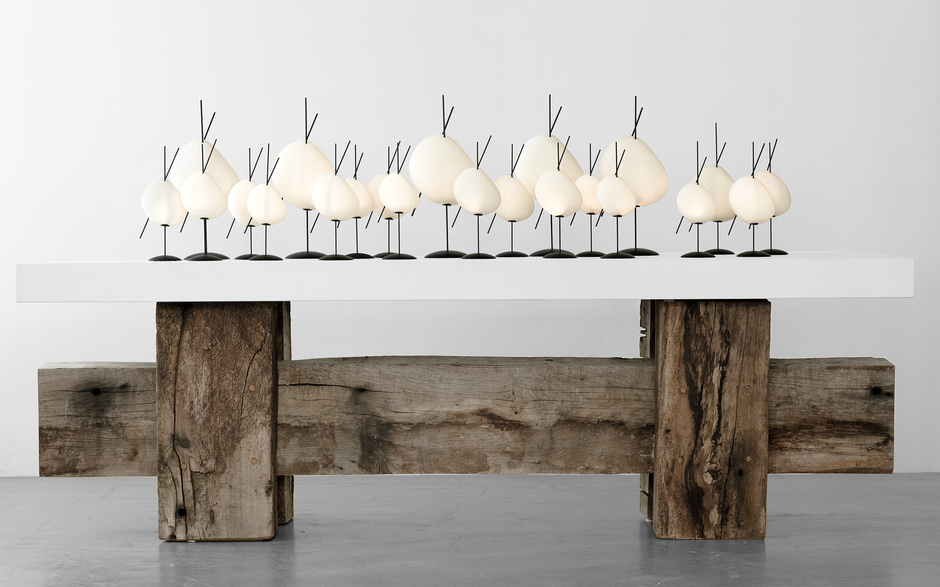 Pour réaliser cette installation lumineuse unique, nous les avons débitées, fait un très bel assemblage pour le piétement, puis nous y avons posé un plateau pour recevoir une colonie de Belles de Nuit.