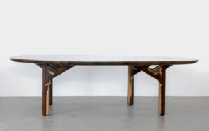 La table Eagles, reprends les codes de la table d’apparat disparue avec l’avènement du design ou l’aspect est secondaire par apport à la fonction.