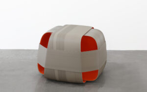Le Tabouret 100, centième création d’YMER&MALTA, se compose de trois anneaux entrelacés, réalisés en impression en composite de lin.